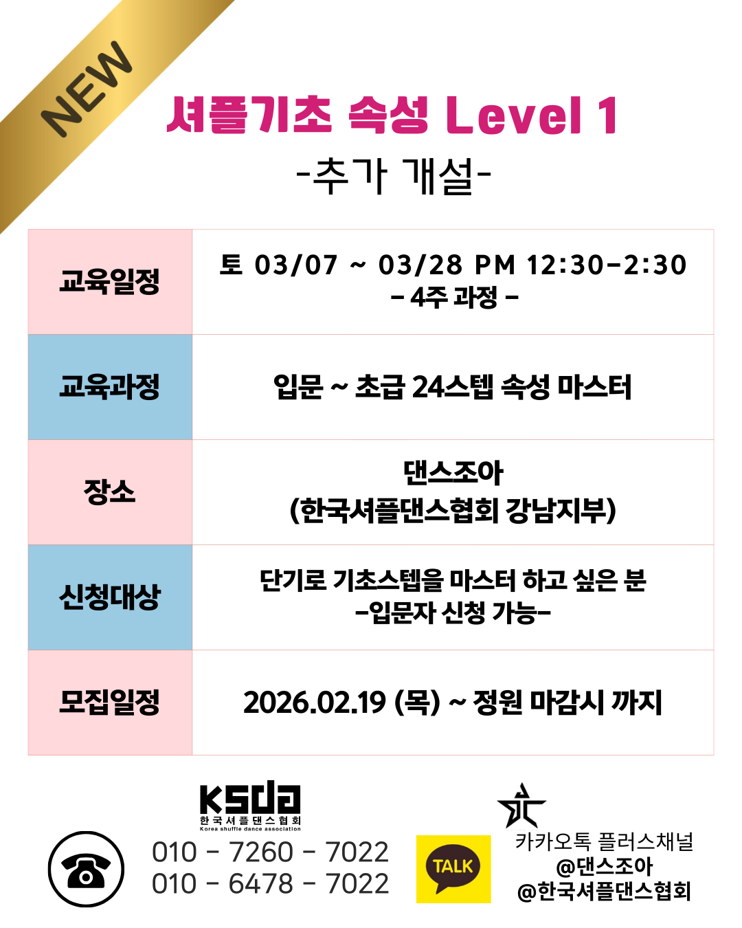 셔플기초 속성 Level 1 추가 개설 입문 ~ 초급 24스텝 속성 마스터 | 2026년 03월 |